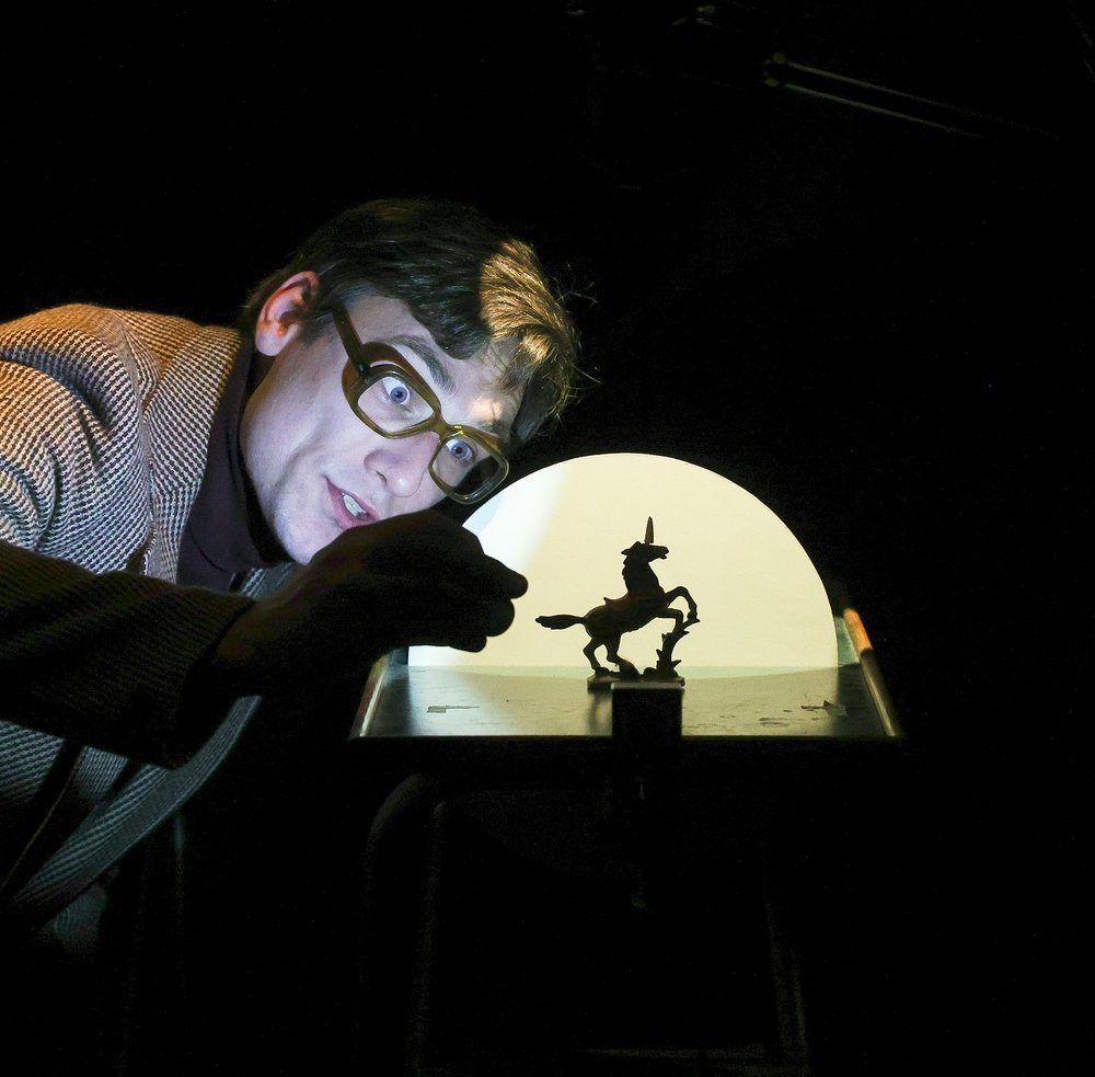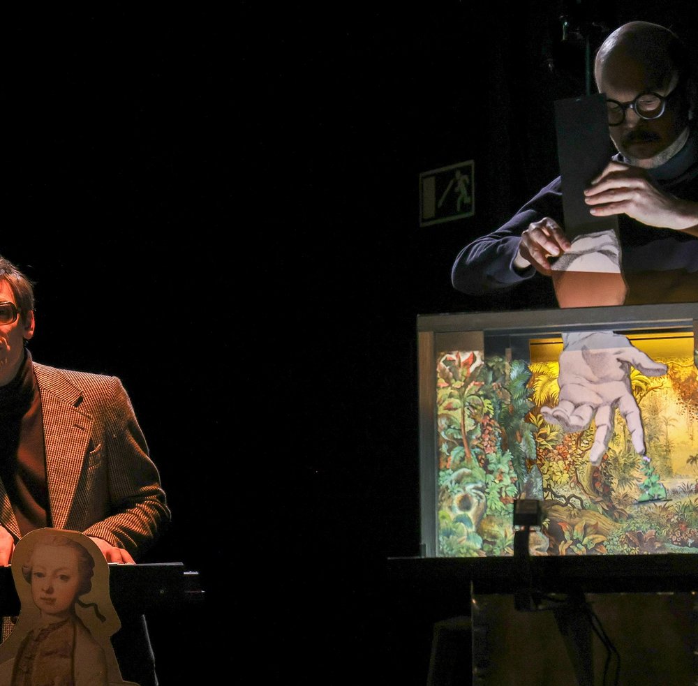 Mit zwei hemmungslos assoziierenden Philosophen reisen wir durch das 18. Jahrhundert: ein wilder Ritt auf dem Rücken eines Nashorns mitten hinein in die Welt des wohl größenwahnsinnigsten Projekts dieser aufklärerischen Zeit: die allumfassende Enzyklopädie von Diderot. In einem Reigen aus skurrilen Nummern mit Fundstücken, Papiertheater-Sets, Live-Kameras und Nasenflöte entfaltet sich die Lebensgeschichte eines berühmten indischen Panzernashorns. „Jungfer Clara“ genannt, tourte es über Jahrmärkte und Königshöfe und fand als Wundertier auch Einzug in die Enzyklopädie.